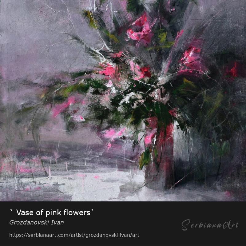 Original artwork description: " Vase of pink flowers ".. W 97 x H 121 cm.....Painted with expressive moves.......with pallet knife and with a brush..... I'm giving all best, to be represent the true colors of the paintings in the photos, but sometimes you can see a little difference in tone.. I take good care packing my art, so it comes to you in the great shape. This work of art was made on professional Italian canvas 340 gr / m2 Note !!! I am sending this artwork rolled up in a plastic tube .!! The painting on the wall of the room is not in true scale....!!!! All my artwork is original !!! Materials used: Acrylic ( Liquitex) & Oil ( Van Gogh)..... on the end covered with a satin coat of varnish, to protect it for the UV and dustShare and promote this artwork