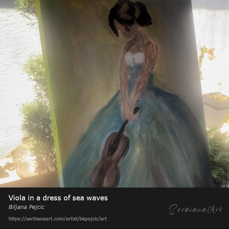 Viola in a dress made of sea waves is a metaphor for a woman who carries oceans within her, but the world only sees her during the performance, and she is ignorant and dedicated to the music