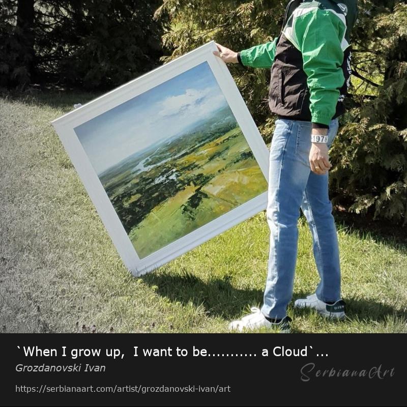 Artist's description: "When I grow up, I want to be........... a Cloud !!!-2 "...Impressionistic style....... ....Painted with expressive moves...........with a lot of emotion!!!... Large Painting W75xH75cm I'm giving all best, to be represent the true colors of the paintings in the photos, but sometimes you can see a little difference in tone.. I take good care packing my art,so it comes to you in the great shape. Note !!! The painting on the wall of the room is not in true scale....!!!! All my artwork is original !!!! Materials used: Acrylic ( Liquitex) & Oil ..... on the end covered with a satin coat of varnish, to protect it for the UV and dustShare and promote this artwork