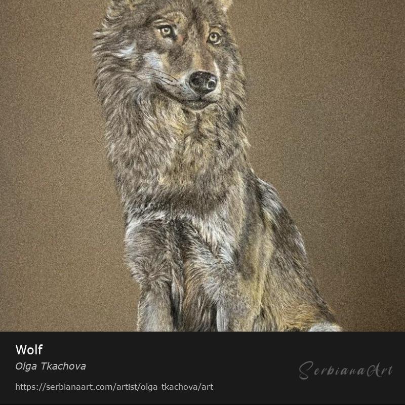 The warm earthy tones of the brown background perfectly contrast with the silver and gray shades of its fur, emphasizing its majestic silhouette. This painting does not just represent a wild animal - it is a symbol of independence, inner strength and aristocratic pride.