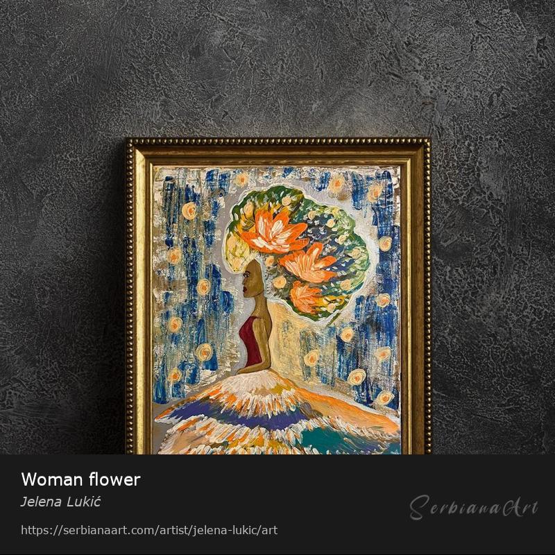 Acrylic on canvas, painting Woman flower, 35x50 cm dimensions, abstract expressionism artistic direction ???????? Share and promote this artwork