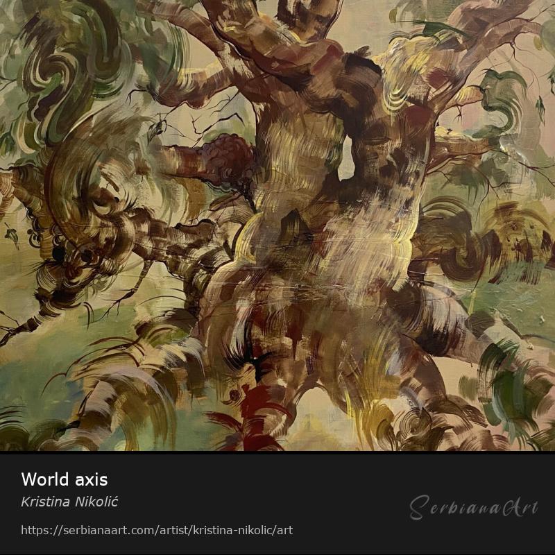 “World axis, (Day of Svarog/Satya Yuga)” 140x160, trees are also believed to be inhabited by spirits in Slavic folklore. Day of Svarog is characterized by a high level of human virtue and morality, time of spiritual enlightenment, righteousness, and harmony.
