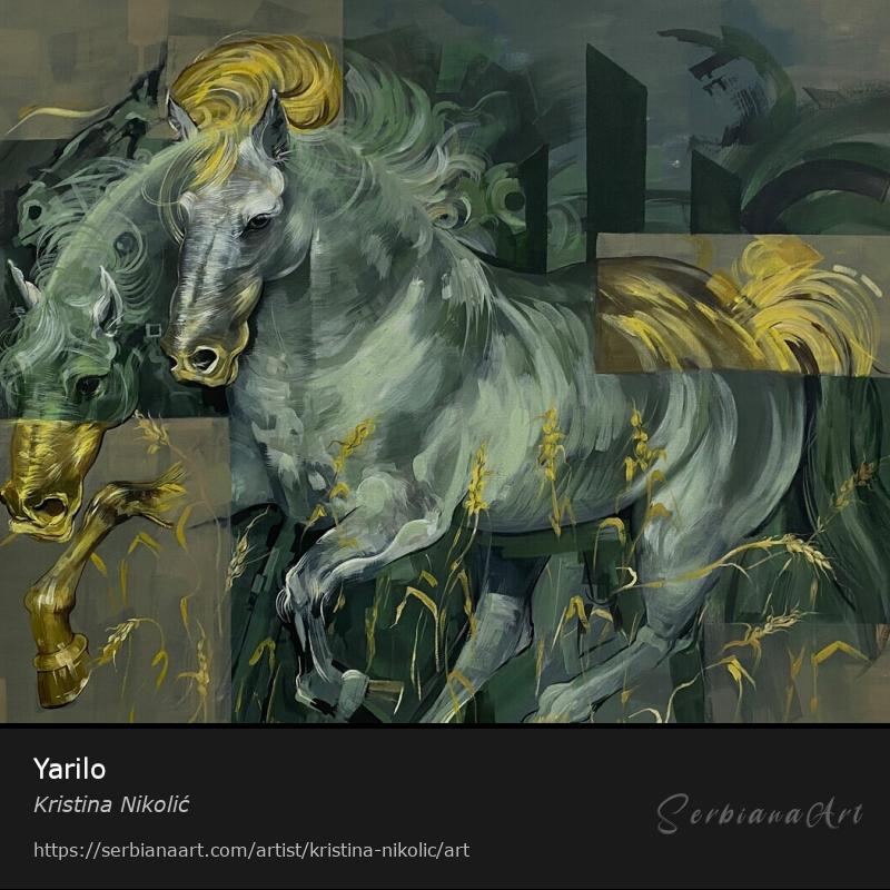 "Yarilo", 160x140, Slavic deity associated with arrival of spring, often depicted as a god on a horse with weath.